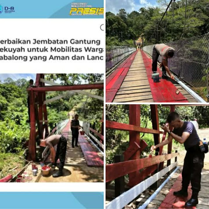 TABALONG – Kepolisian Negara Republik Indonesia (Polri) melalui jajaran Satuan Brimob Polda Kalimantan Selatan kembali menunjukkan kepedulian nyata terhadap kesejahteraan masyarakat. Kali ini, aksi sosial dan pemeliharaan infrastruktur dilakukan dengan melaksanakan kegiatan gotong royong perbaikan dan pengecatan ulang Jembatan Gantung Sekuyah, yang terletak di Desa Dambung Raya, Kabupaten Tabalong.