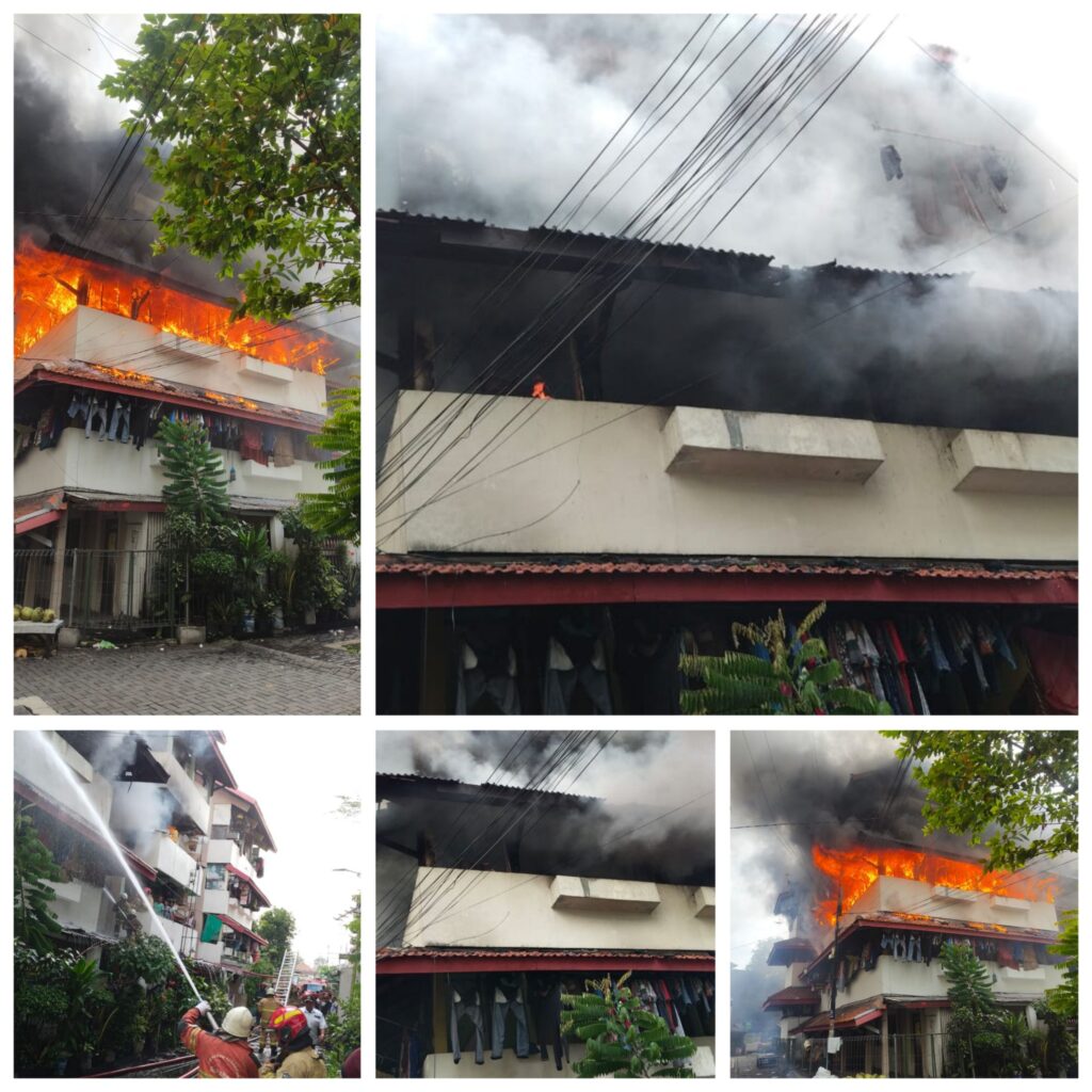 SURABAYA – liputan, Kupas Tajam – Peristiwa kebakaran menggemparkan warga Rumah Susun (Rusun) Sumbo Blok H, Kecamatan Simokerto, Surabaya, pada dini hari sekitar pukul 14:30 siang WIB. Api diduga kuat berasal dari tabung gas elpiji di salah satu unit hunian yang berlokasi di lantai 3. Keterangan ini didapatkan dari sejumlah saksi mata yang berada di lokasi kejadian saat insiden berlangsung.