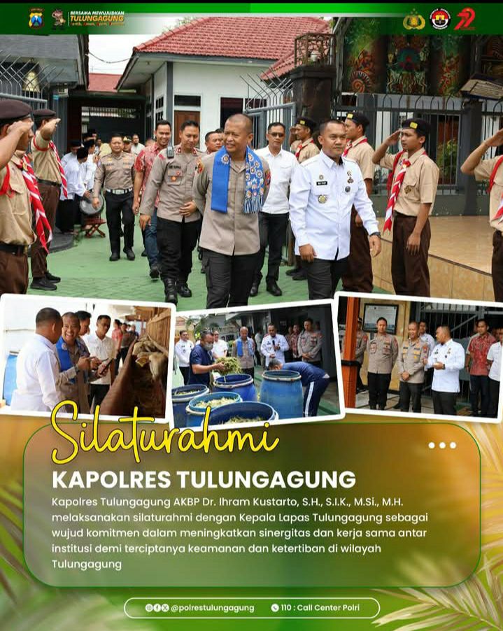TULUNGAGUNG – Kapolres Tulungagung AKBP. Muhammad Fadhil Rahman, S.H., M.H., melakukan kunjungan silaturahmi dan kerja sama kepada Kepala Lapas Kelas IIA Tulungagung, Drs. H. Slamet Santoso, M.Si., pada hari Selasa (29/03/2026) pagi hari, di Ruang Kerja Kepala Lapas Tulungagung. Kunjungan ini menjadi bagian dari upaya meningkatkan koordinasi dan sinergitas yang erat antara Kepolisian Resor Tulungagung dengan Lembaga Pemasyarakatan Tulungagung dalam menjalankan tugas dan fungsi masing-masing institusi.