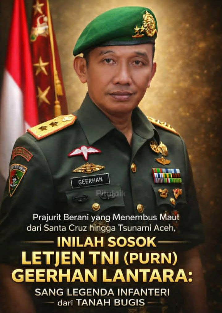 “Sosoknya tetap dikenang sebagai salah satu jenderal infanteri terbaik yang dimiliki Indonesia, yang pengabdiannya telah tertulis dalam tinta emas sejarah kedaulatan dan kemanusiaan bangsa.” Selamat dan hormat untuk Sang Legenda, Letjen TNI (Purn) Andi Geerhan Lantara.