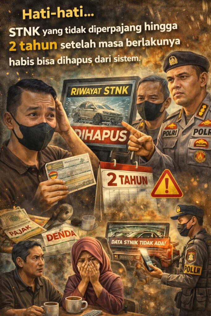 JAKARTA – Banyak orang menganggap bahwa STNK yang sudah mati selama 2 tahun hanya masalah keterlambatan membayar pajak kendaraan. Namun kenyataannya, kondisi tersebut bisa menyebabkan data kendaraan dihapus total dari sistem administrasi resmi – yang berarti kendaraan kehilangan status sebagai kendaraan yang terdaftar secara sah. Ini bukan hanya soal razia yang mungkin dilakukan oleh aparat, melainkan bagaimana sistem administrasi beroperasi tanpa kompromi terhadap kelalaian yang dilakukan oleh pemilik kendaraan.
